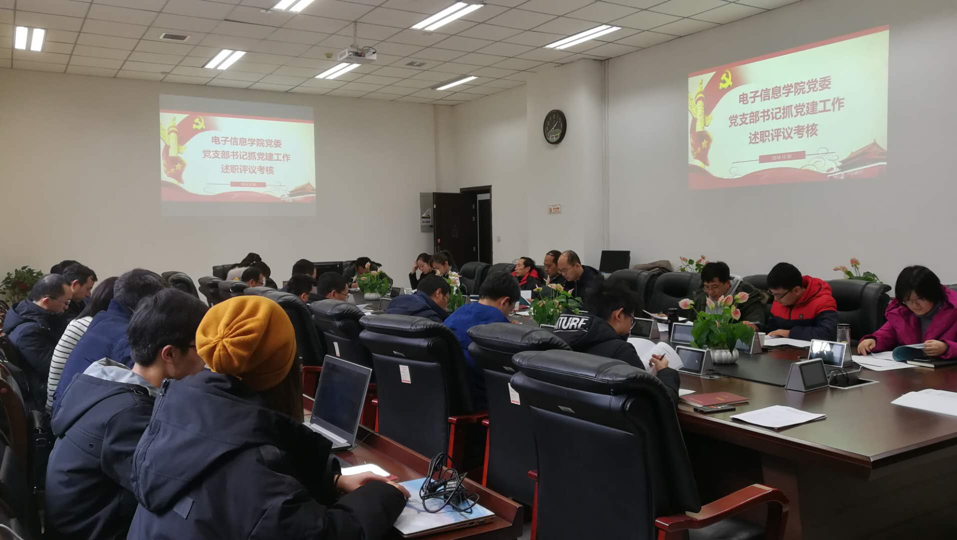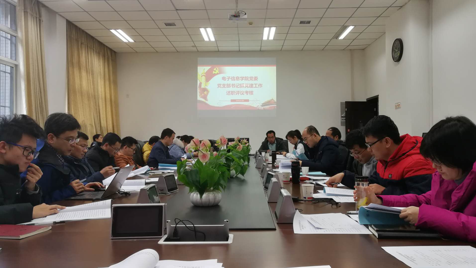 为深入学习贯彻习近平新时代中国特色社会主义思想和党的十九大精神,全面落实管党治党政治责任,进一步推动全面从严治党向基层延伸,切实提高党建工作质量。根据学校《关于开展2019年度党支部书记抓党建工作述职评议考核的通知》文件精神,12月30日,电子信息学院党委在119会议室召开了2019年党支部书记抓党建工作述职评议考核大会。评审组由学院党委委员、教授代表、党外代表人士、青年教师代表等组成,全体教工党支部书记参加了会议,会议由学院党委书记李春林主持。