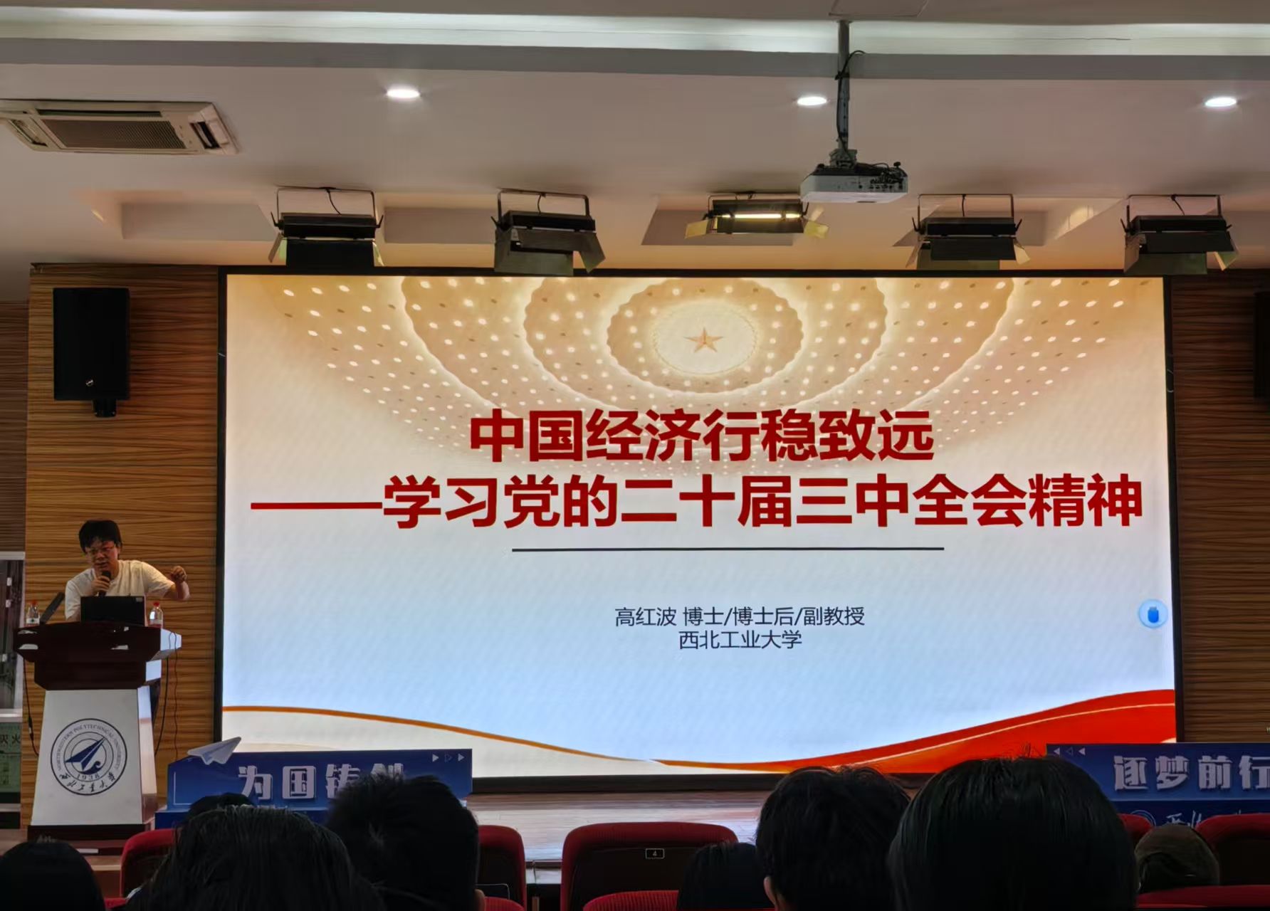 高红波老师以《中国经济行稳致远——学习党的二十届三中全会精神》为题,围绕全面深化改革的时代背景、经济发展的基础与信心来源、应对外部挑战的内在制度优势,以及新时代改革新征程的方向路径等内容展开深入讲解,引导学生去更好地理解中国式现代化的经济逻辑与体制支撑。