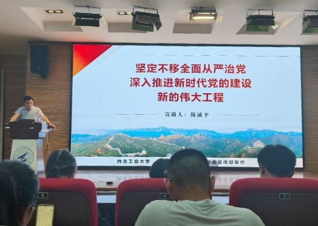 陈诚平副教授以《坚定不移全面从严治党,深入推进新时代党的建设新的伟大工程》为主题,系统梳理了新时代党的建设总要求。从深入学习领会党的二十大精神的意义,新时代党的建设新的伟大工程取得的成就、面临的挑战,坚定不移全面从严治党,深入推进新时代党的建设新的伟大工程以及习近平总书记关于党的建设的重要思想的基本内容五个方面进行了阐述。