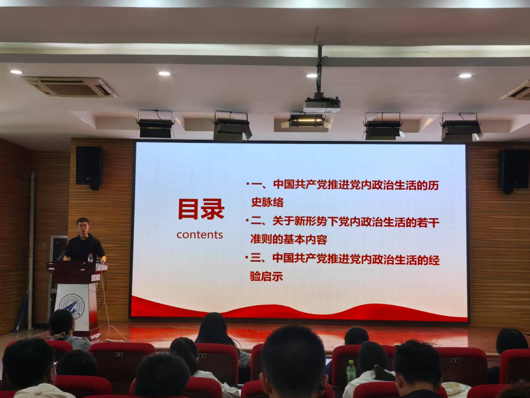 代家玮副教授聚焦党的十八届六中全会通过的《关于新形势下党内政治生活的若干准则》,系统梳理了党内政治生活的历史脉络、核心要求与实践路径,并强调严肃党内政治生活是全面从严治党的基础性工程,也是保持党的先进性和纯洁性的根本保障。