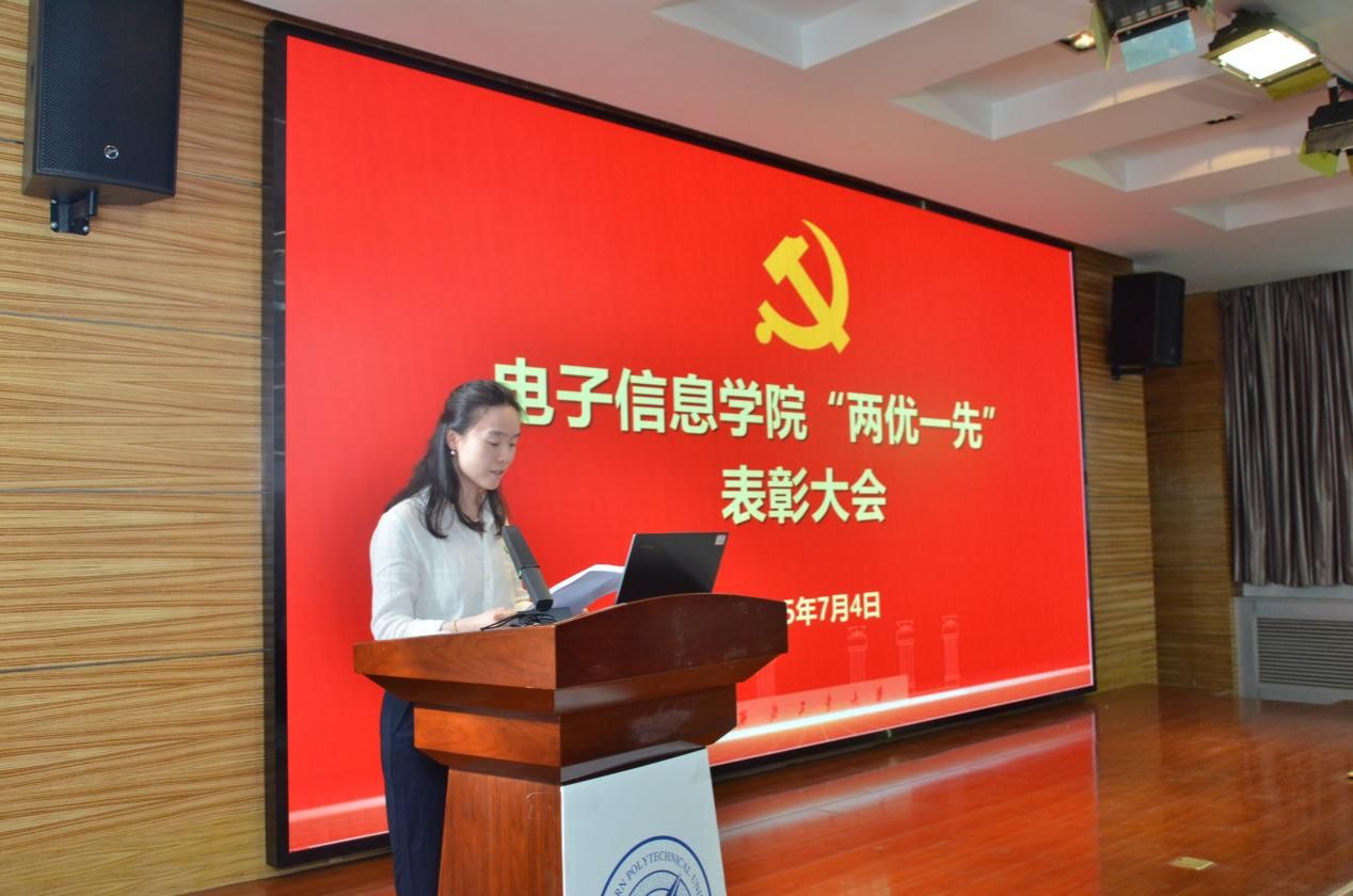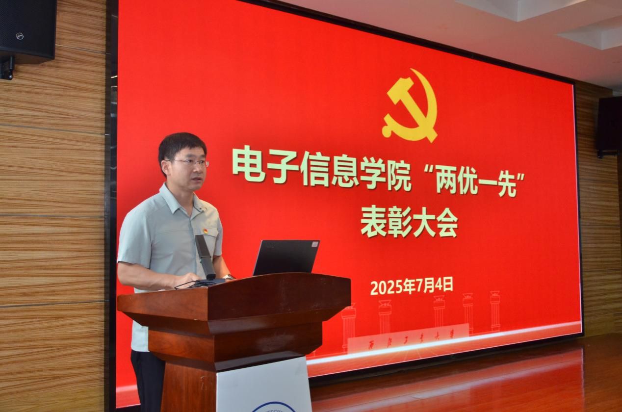 最后,侯俊代表学院党委向受到表彰的先进集体和个人表示热烈祝贺。他强调,站在新的起点上,我们肩负的使命更加光荣,任务更加艰巨。他结合学院实际向全体党员同志们提出几点希望:一是要坚定理想信念,做对党忠诚的“排头兵”。始终把政治建设摆在首位,深入学习贯彻习近平新时代中国特色社会主义思想,深刻领悟“两个确立”的决定性意义。二是要强化责任担当,做干事创业的“主力军”。发扬钉钉子精神,以“功成不必在我,功成必定有我”的胸怀,为学院的高质量发展贡献力量。三是要牢记初心使命,做服务师生的“贴心人”。始终坚持以人民为中心的发展思想,切实解决师生的急难愁盼问题,带动全院师生团结一心、共同奋斗。四是要严守纪律规矩,做清正廉洁的“干净人”。要严格遵守党的各项纪律和规章制度,自觉抵制各种诱惑,保持清正廉洁的政治本色,树立共产党员的良好形象。全院师生要以受表彰的先进集体和优秀个人为榜样,不忘初心、牢记使命,踔厉奋发、勇毅前行,为推动学院各项事业高质量发展,为实现学校“127”发展目标和“天下工大、世界三航”远景目标而努力奋斗!