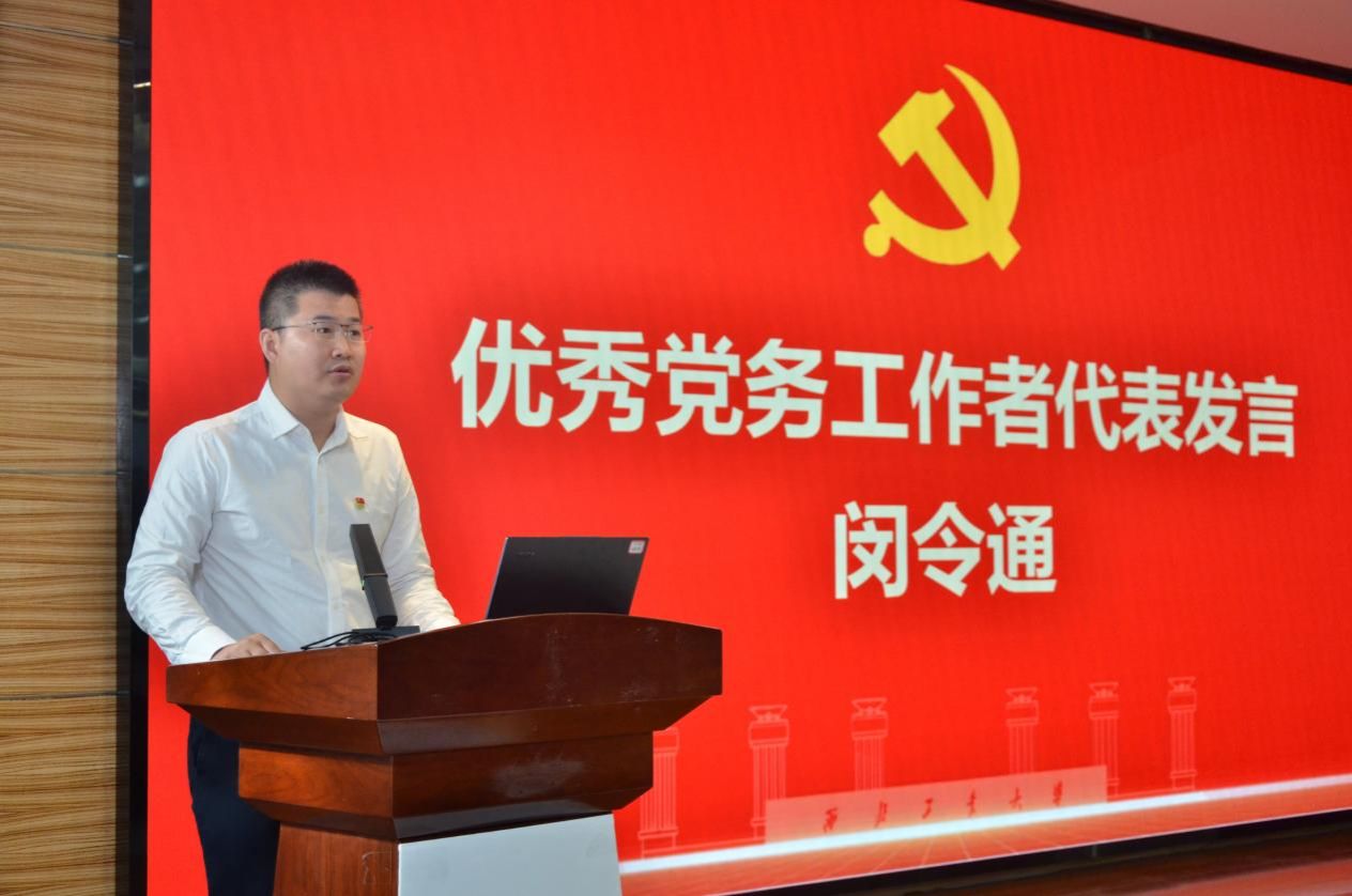 会上,优秀共产党员代表朱新生结合自身科研实践和支部工作经历,深情表达了新时代青年党员“听党话、跟党走”的坚定信念,展现了西工大学子以“总师”育人文化为指引,勇攀科技高峰、服务国家需求的使命担当。他号召全体青年党员将个人理想融入国家发展,在实现民族复兴的伟大征程中书写青春华章。优秀党务工作者代表、系统与控制工程系党支部书记闵令通从以学铸魂、夯实思想根基,以干促行、服务师生需求,以廉正身、永葆党员本色三个方面分享支部工作成效与经验,未来将继续带领支部成员,围绕学院中心工作,创新党建活动形式,更好地发挥党支部战斗堡垒作用。先进党支部获奖代表、本科生第三党支部书记吴艺博表示,将以更加昂扬的姿态、更加务实的作风、更加奋进的脚步,延续支部光荣传统,探索创新工作方法,组织引领支部党员做有理想、敢担当、能吃苦、肯奋斗的新时代好青年。