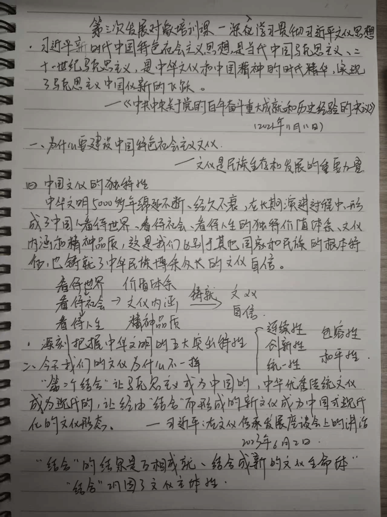 培训期间,学员们通过笔记记录、心得撰写等方式深化学习成效,累计形成了300余份学习成果,展现了积极的学习态度和深刻的思想感悟,体现了从“被动接受”到“主动内化”的学习转变。