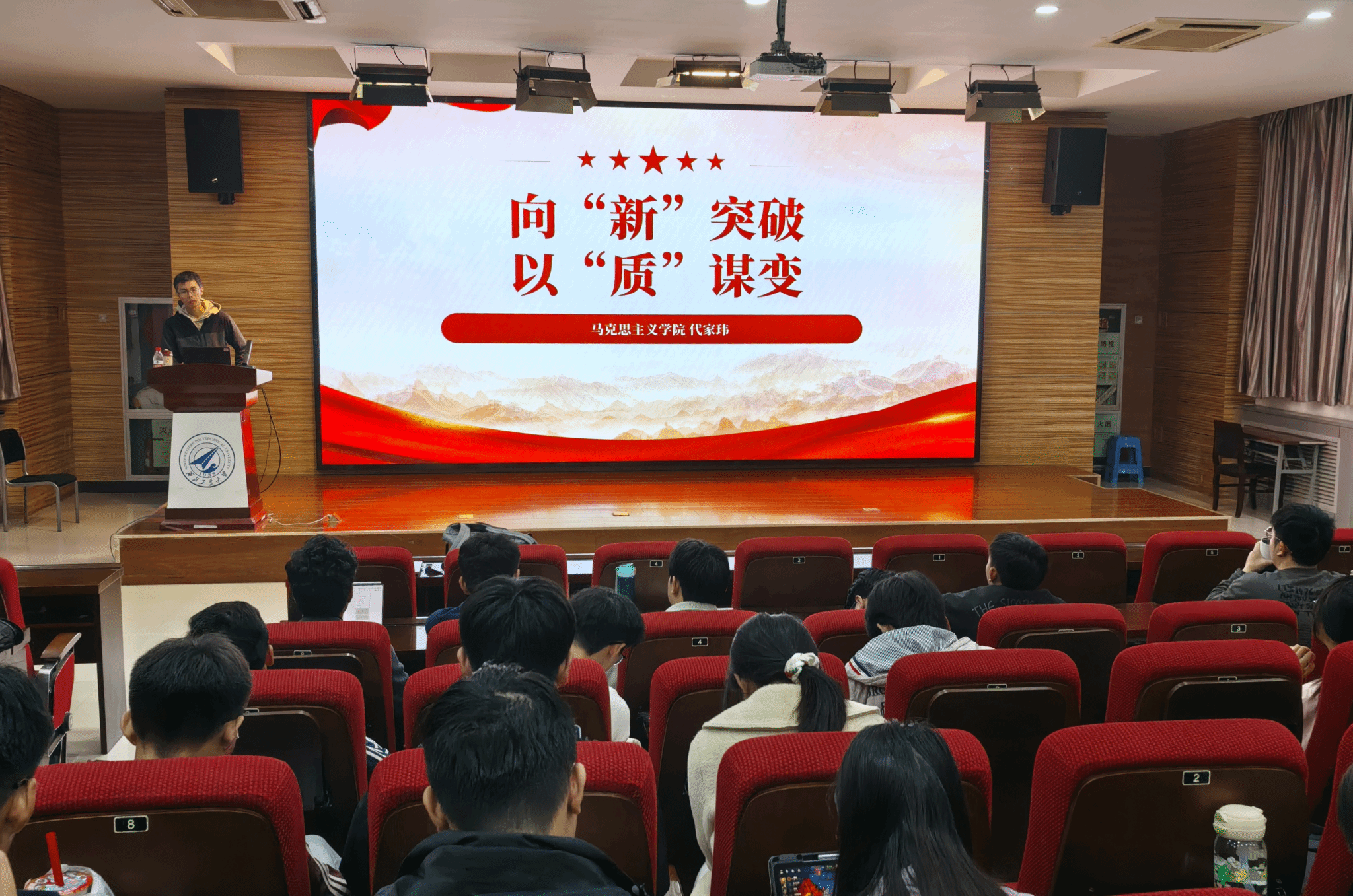 11月4日,马克思主义学院代家玮副教授以《向“新”突破,以“质”谋变”》为题解读新质生产力。面对全球科技与产业变革的时代浪潮,他指出,我国经济正迈向高质量发展新阶段,全体学员应深植家国情怀,勇担历史使命,在服务国家发展的实践中成就个人理想,为民族复兴贡献智慧与力量。