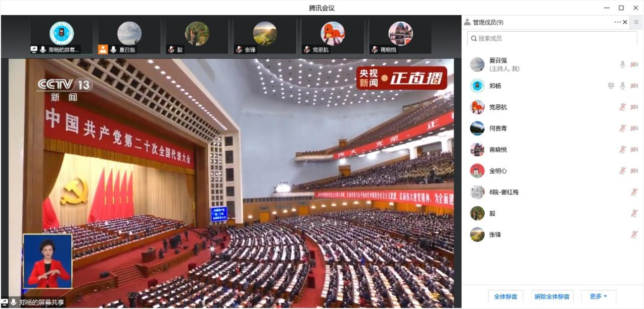 E智媒导学团队师生联合党支部全体党员根据疫情防控要求采用线上线下相结合的方式共同中国共产党第二十次全国代表大会的现场直播认真聆听习近平总书记代表十九届中央委员会向大会作的报告,共同亲历这一庄严时刻,第一时间学习领会大会精神。