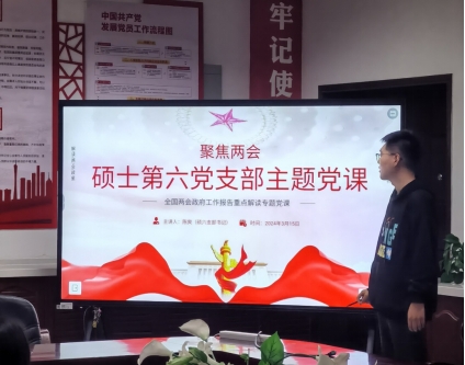 为深入学习贯彻全国两会会议精神,更好地理解政府工作报告, 2024年3月15日晚,77779193永利官网集团硕士第六党支部在学院432会议室开展了关于全国两会政府工作报告重点解读专题党课。本次党课由硕士第六党支部书记陈爽同志主持,支部全体党员参加。