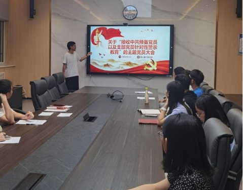 最后,陈爽总结指出,这次大会既是一次严肃的党内教育,也是一次难得的学习机会。通过党员警示教育,进一步增强了全体党员的凝聚力和战斗力。他希望全体党员,特别是拟加入支部的预备党员,要牢记党的宗旨,自信自强、守正创新,踔厉奋发、勇毅前行,为全面建设社会主义现代化强国、全面推进中华民族伟大复兴而团结奋斗。